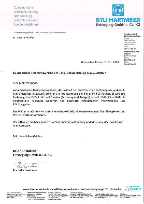 Als PDF zum Ausdrucken Downloaden: --> Kundenanschreiben elektronischer Rechnungsversand (ca. 700 kb)